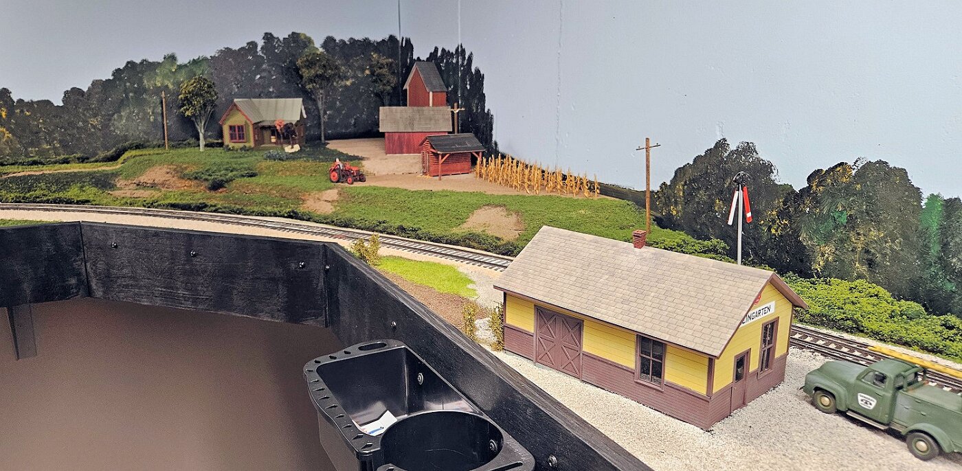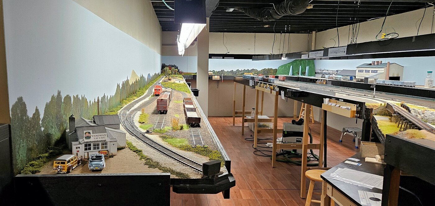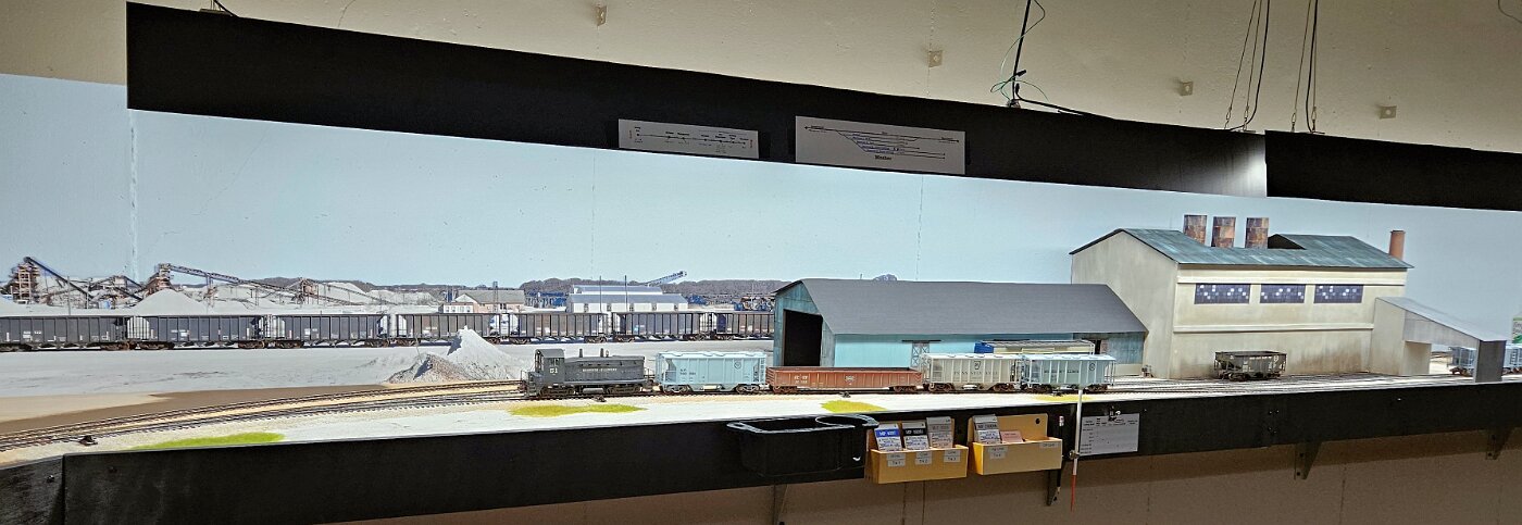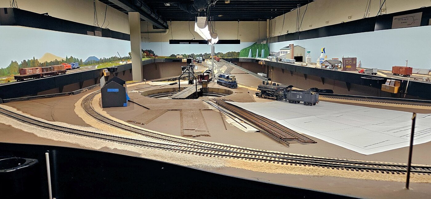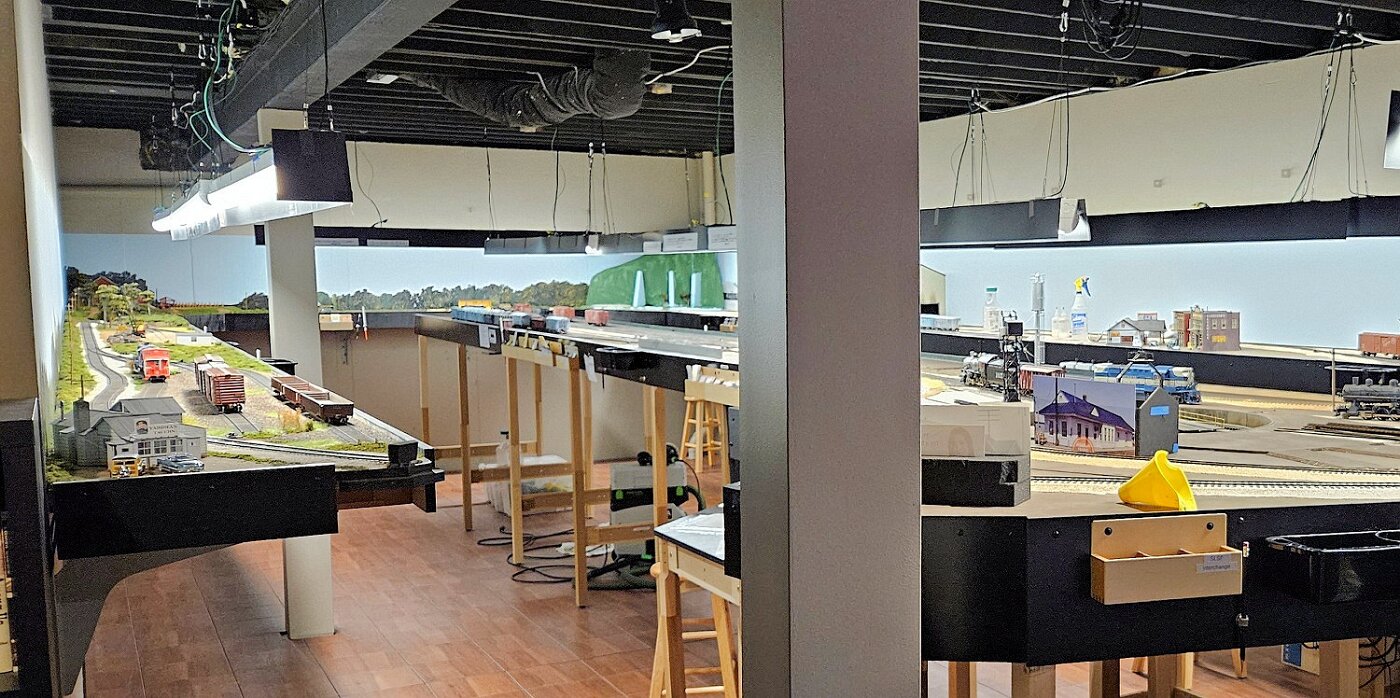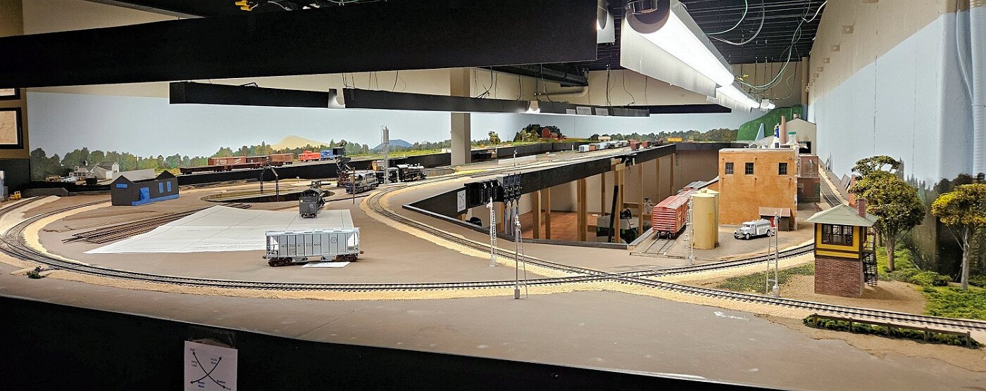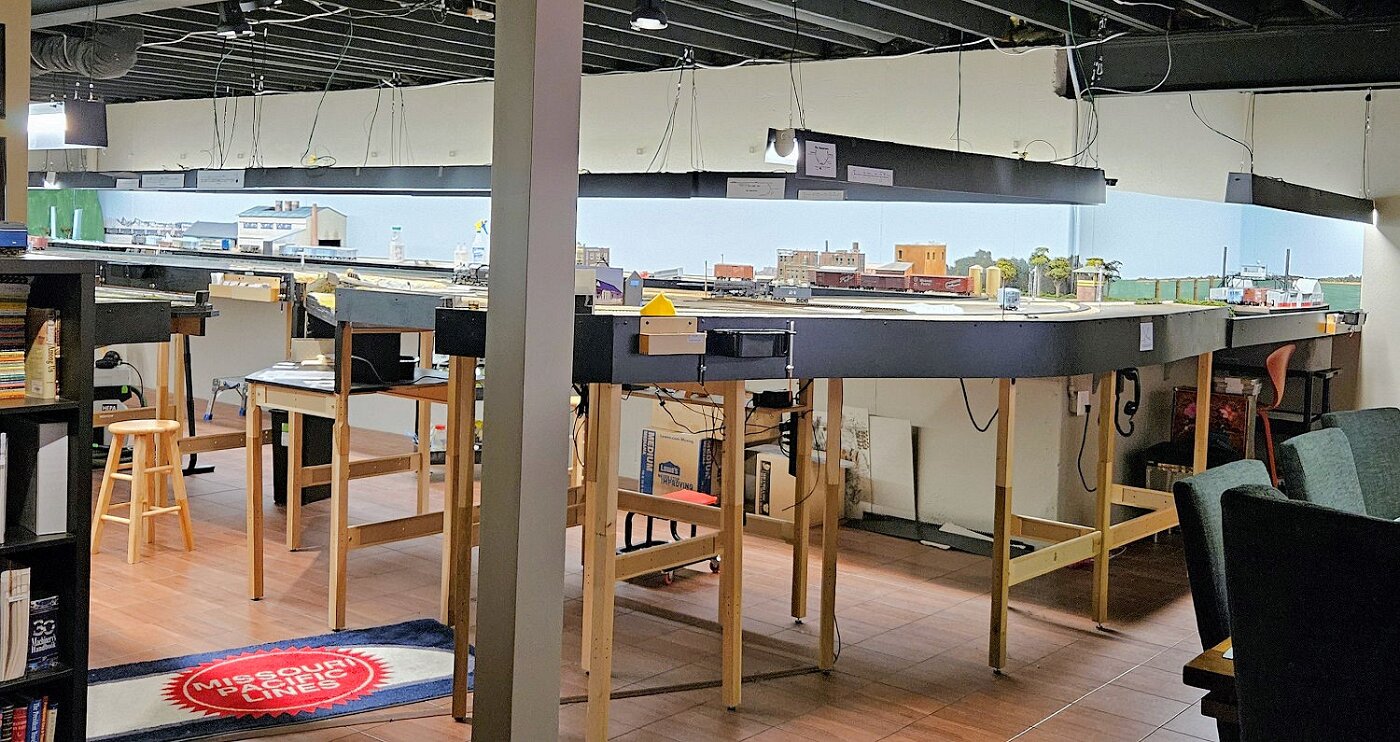 This is an Proto48, O scale layout in a 24x36ft basement. P48 means correct gauge for O and scale detailing. The M-I is based on a 35 mile sub-division in Missouri, that connected to Illinois via a railroad Ferry across the Missouri River. Many scenes were under construction during my visit.