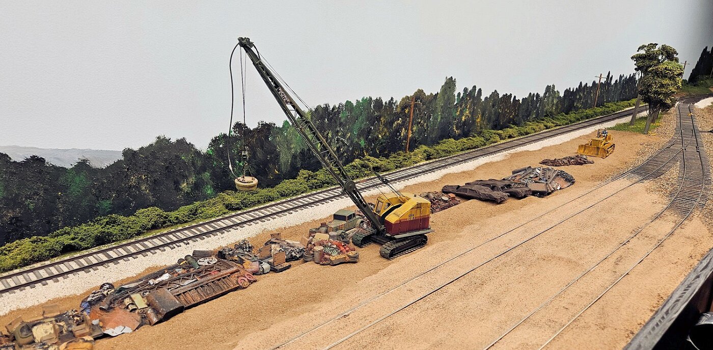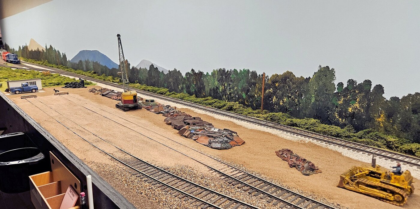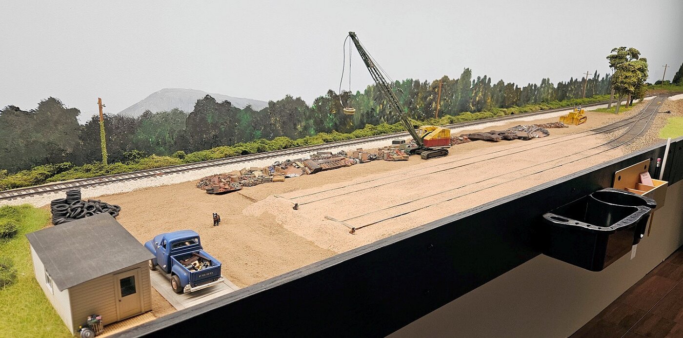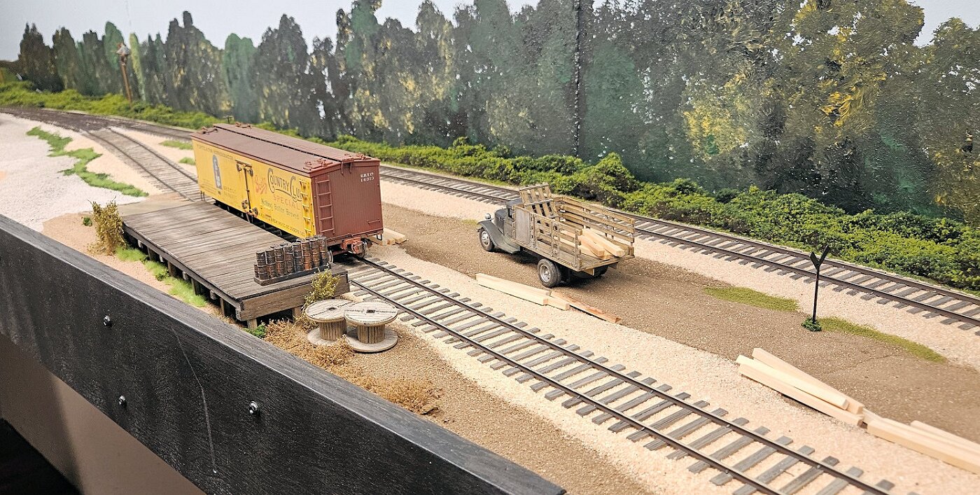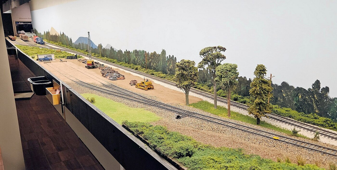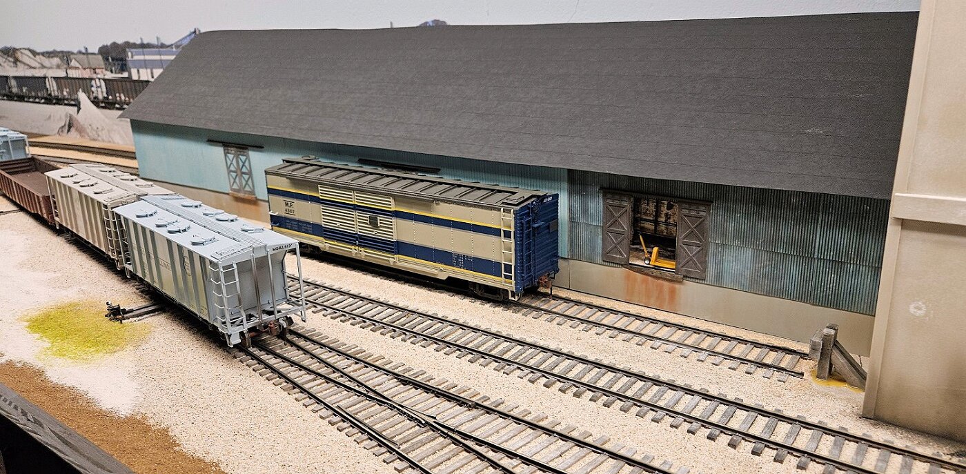 This is an Proto48, O scale layout in a 24x36ft basement. P48 means correct gauge for O and scale detailing. The M-I is based on a 35 mile sub-division in Missouri, that connected to Illinois via a railroad Ferry across the Missouri River. Many scenes were under construction during my visit.
