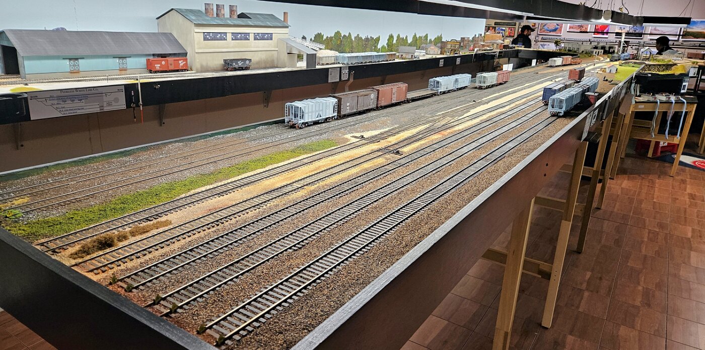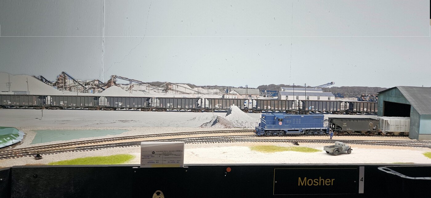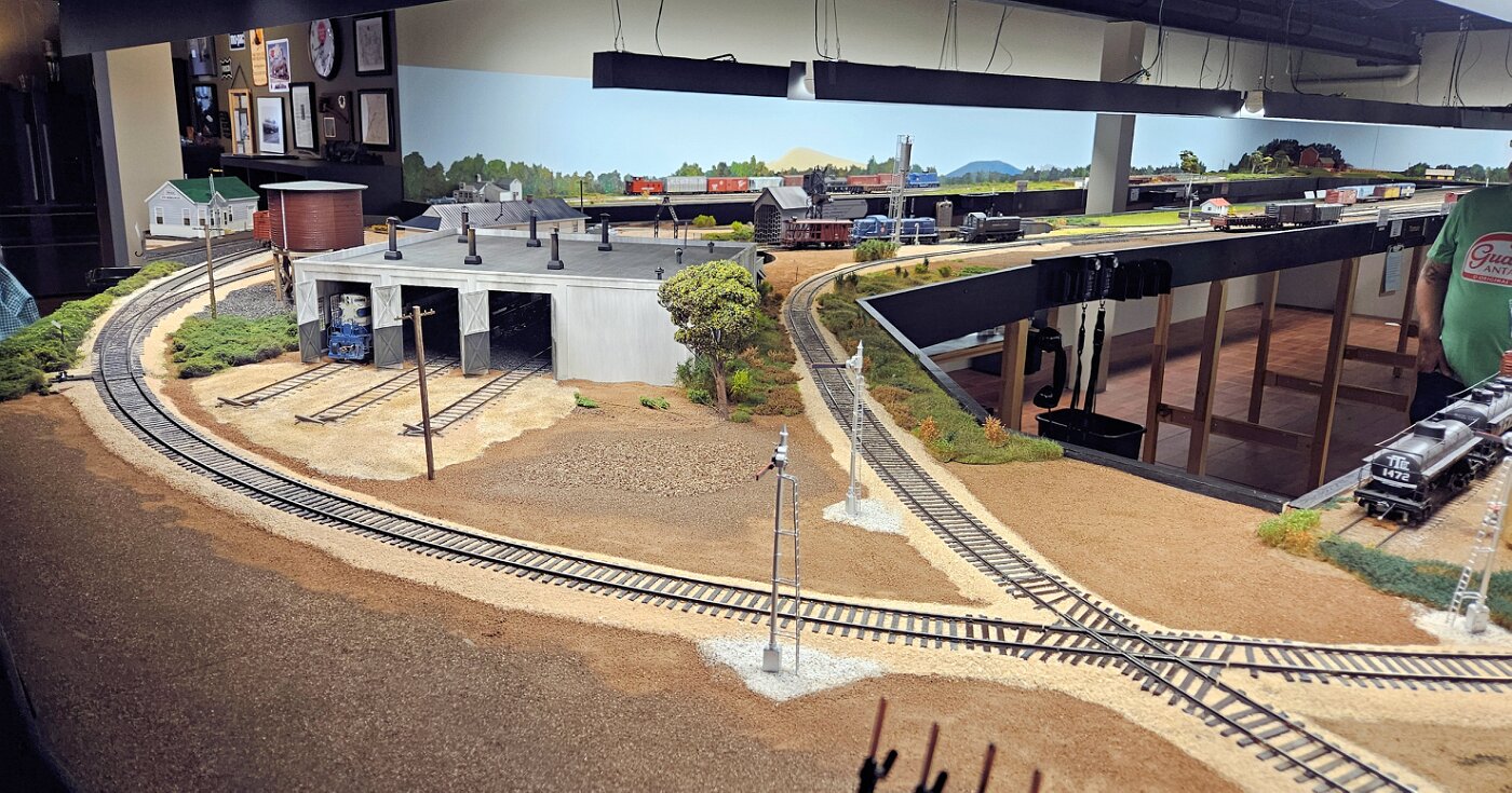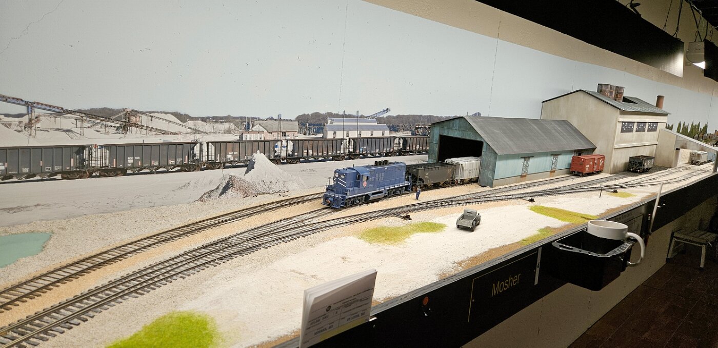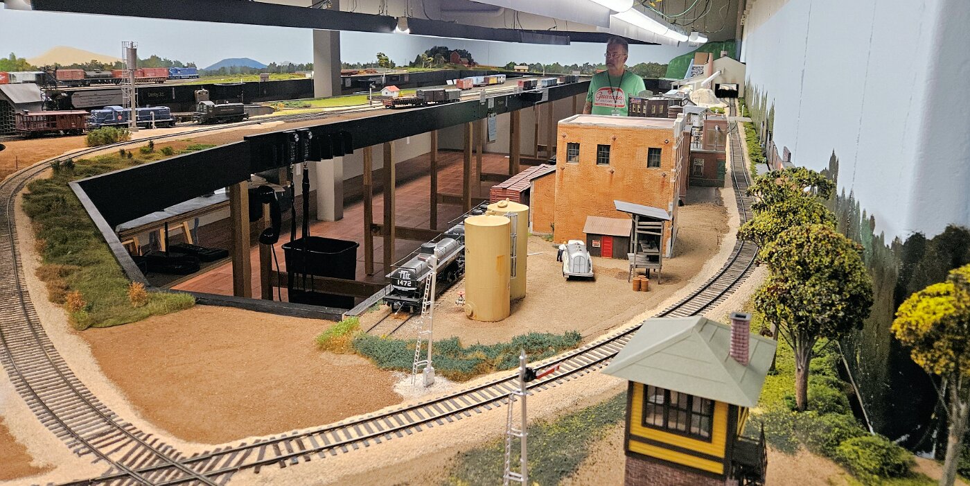 Gregg Laiben's railroad is a Proto48 layout (O scale, exact scale trackage), is set around a 35 mile subdivision of the M-I. It features a River Ferry operation and service yard, with a local run and large quarry operation. Lots of details.