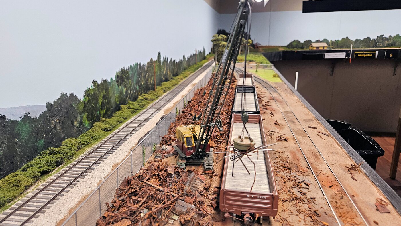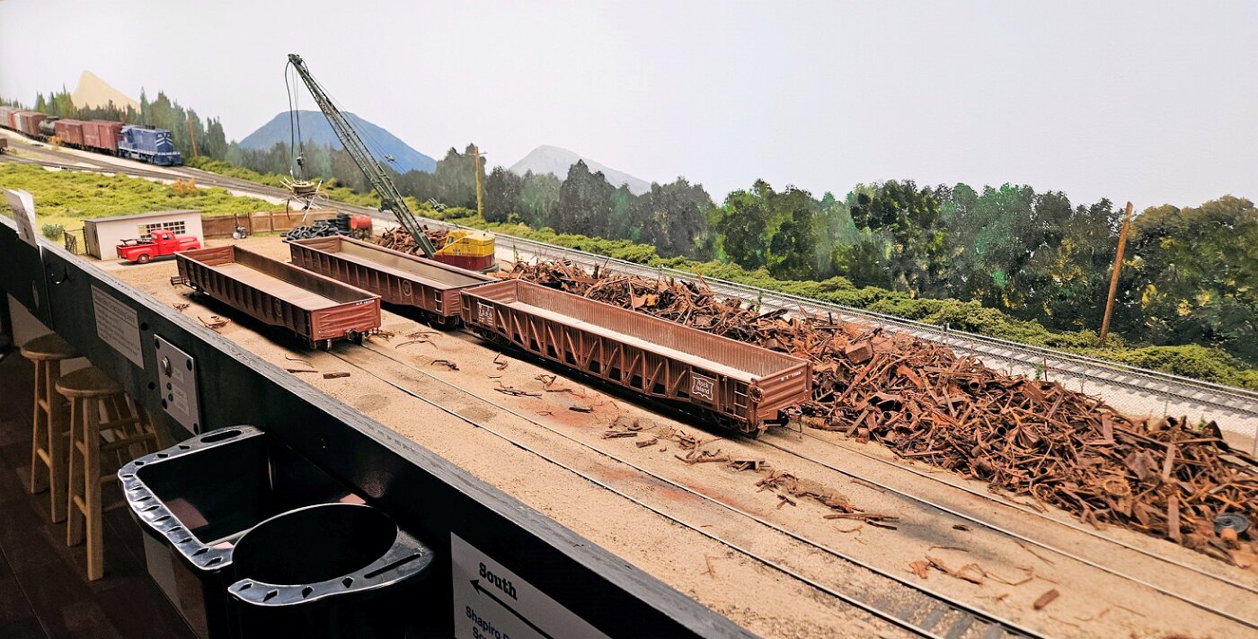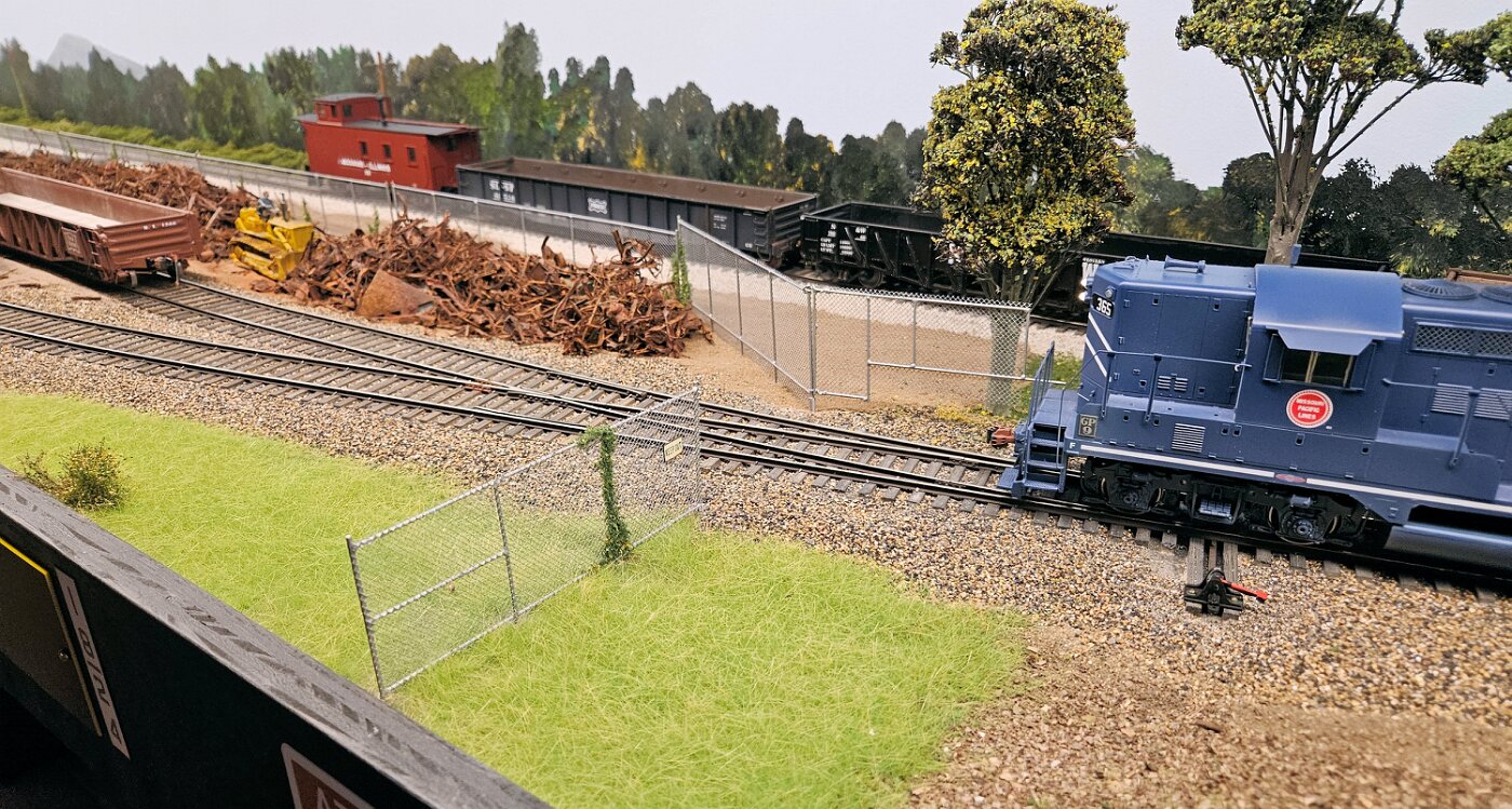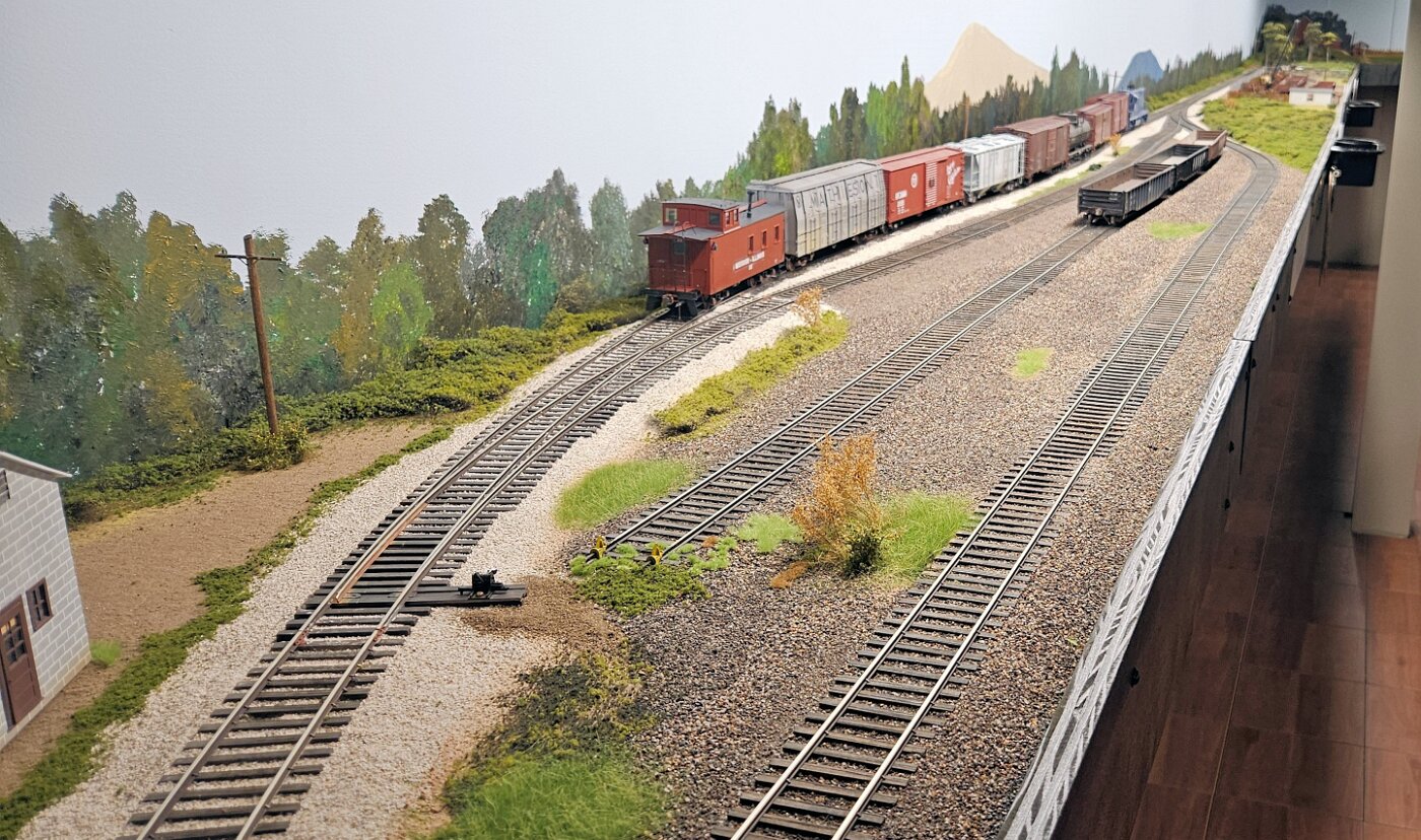 Gregg Laiben's railroad is a Proto48 layout (O scale, exact scale trackage), is set around a 35 mile subdivision of the M-I. It features a River Ferry operation and service yard, with a local run and large quarry operation. Lots of details.